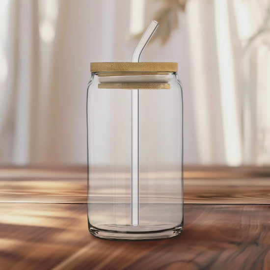 My Daily Affirmations 16 oz Glass Tumbler with bamboo lid and glass straw.